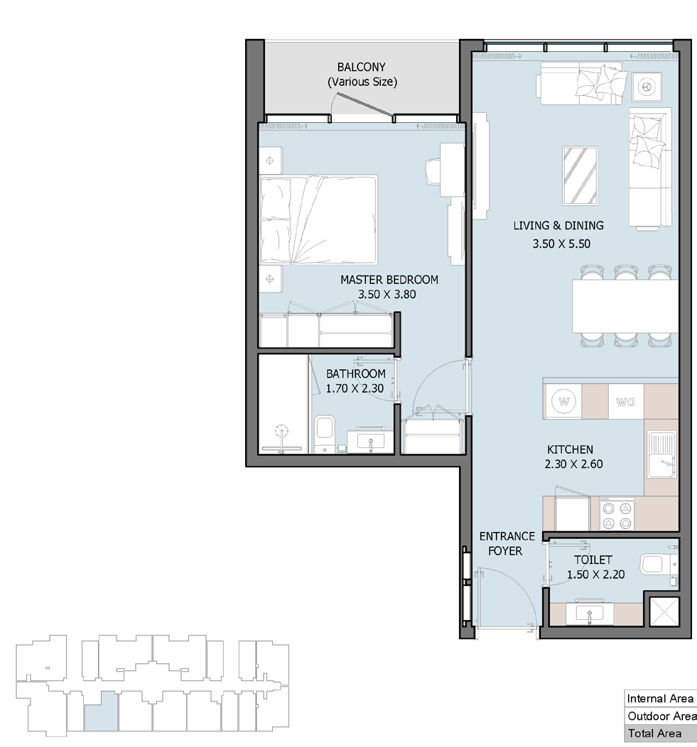 All areas, layouts, and specifications are approximate and subject to change as per final design, regulatory approvals, and construction updates. Visuals and furnishings shown are for illustrative purposes only and are not part of the standard offering.